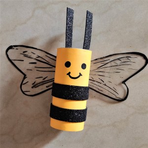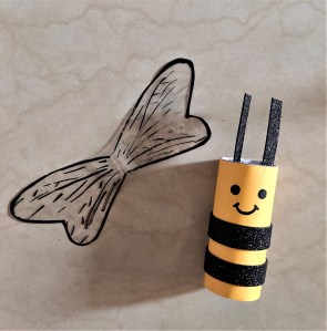 We made a bumblebee using toilet paper roll and tried an innovation for wings that really worked with the wings making a flapping sound under the fan.