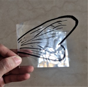 4. Draw wings using a permanent marker on a transparent thick sheet. You can also use plain white or yellow paper. Paste it on the back of the bumblebee.