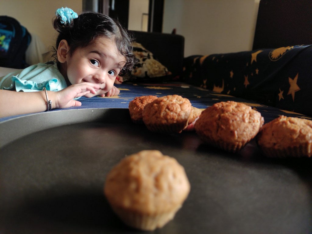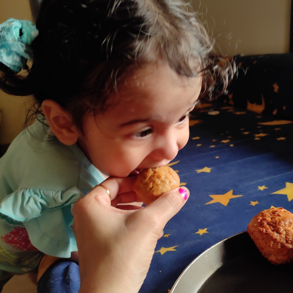 My toddler enjoying the muffins